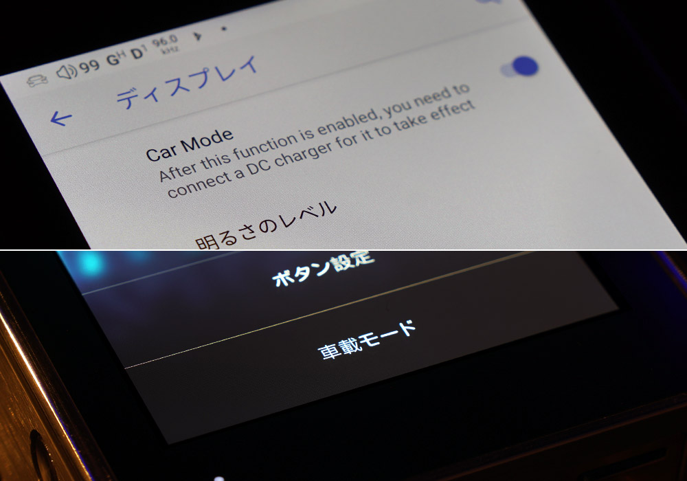 充電機能・自動再生モード等を可能にする「カーモード」を装備(ON・OFF可能)