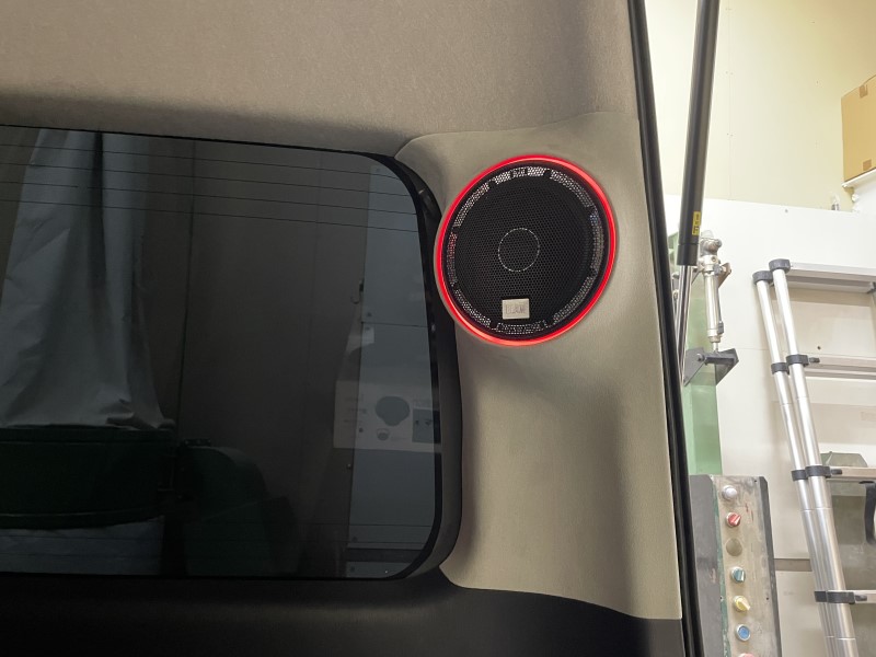リア用に天井とDピラーにも加工でスピーカーを追加してます。