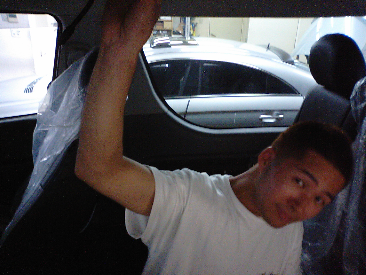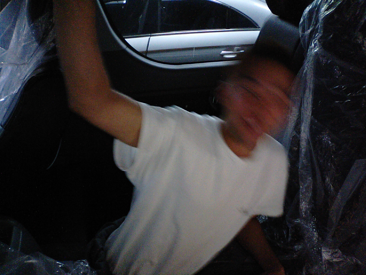「フリップダウンモニターちょっとささえっとって!」といって本気でささえる、いやしんぼゾンソン。僕の写真にはまだ全然気づいていません。