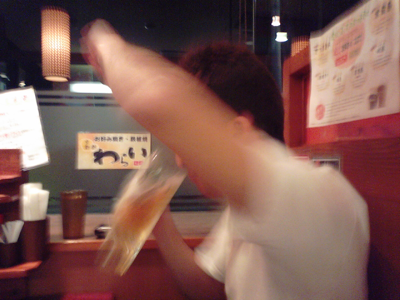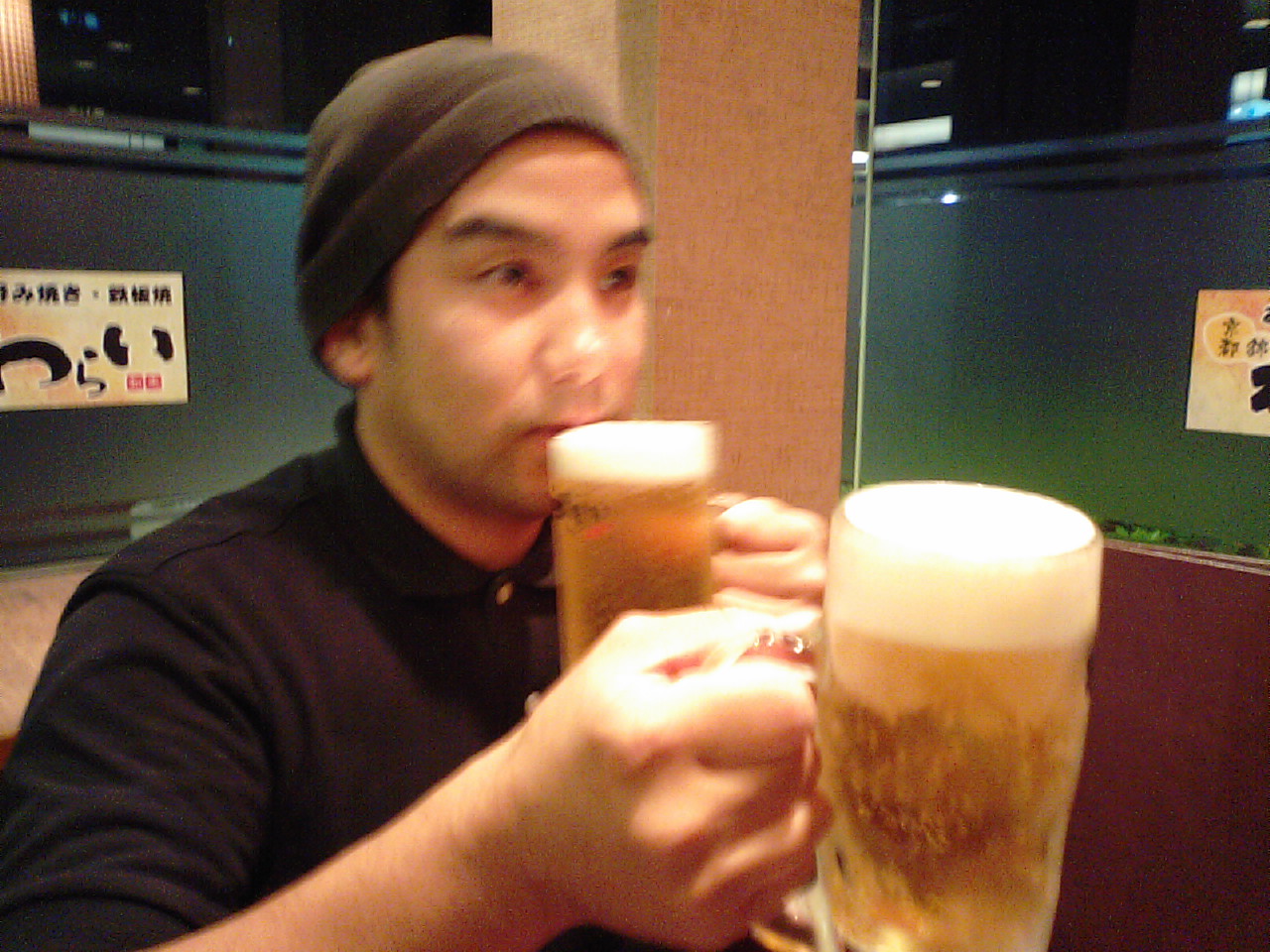 ビールで乾杯するせいそんとぞんそん