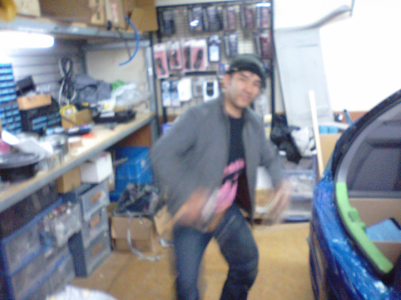 ピットでアクリルを磨いていると、イニシャルDが入ってきて、「むらっさん、お客さんっす。ともや・・・ともや・・・ともやってむらっさん??」まさか和歌山からだれかきたな~と思いながら外に出てみると、和歌山の夜の帝王 きりも○さんじゃないですか! いきなりの来店にふいをつかれましたが「冷やかしに来た」「この車200万やったら買うわ」「仕事してる振りして奥の方でさぼってたんやろ」など言い残して息子さんとラジ天へ行っちゃいました。数年前にトヨタの海外モデル セコイアにオーディオを取り付けさせていただきました。でもいまはお金持ちをアピールせずにキューブに乗っています。 今度和歌山に帰ったらつもっちと一緒に飲みにつれって下さい!勝手に楽しみにしています。