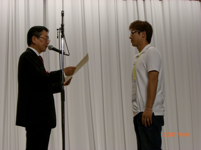 こっちみてみて、左手に賞状、右手にトロフィーを持ってる!ミスター