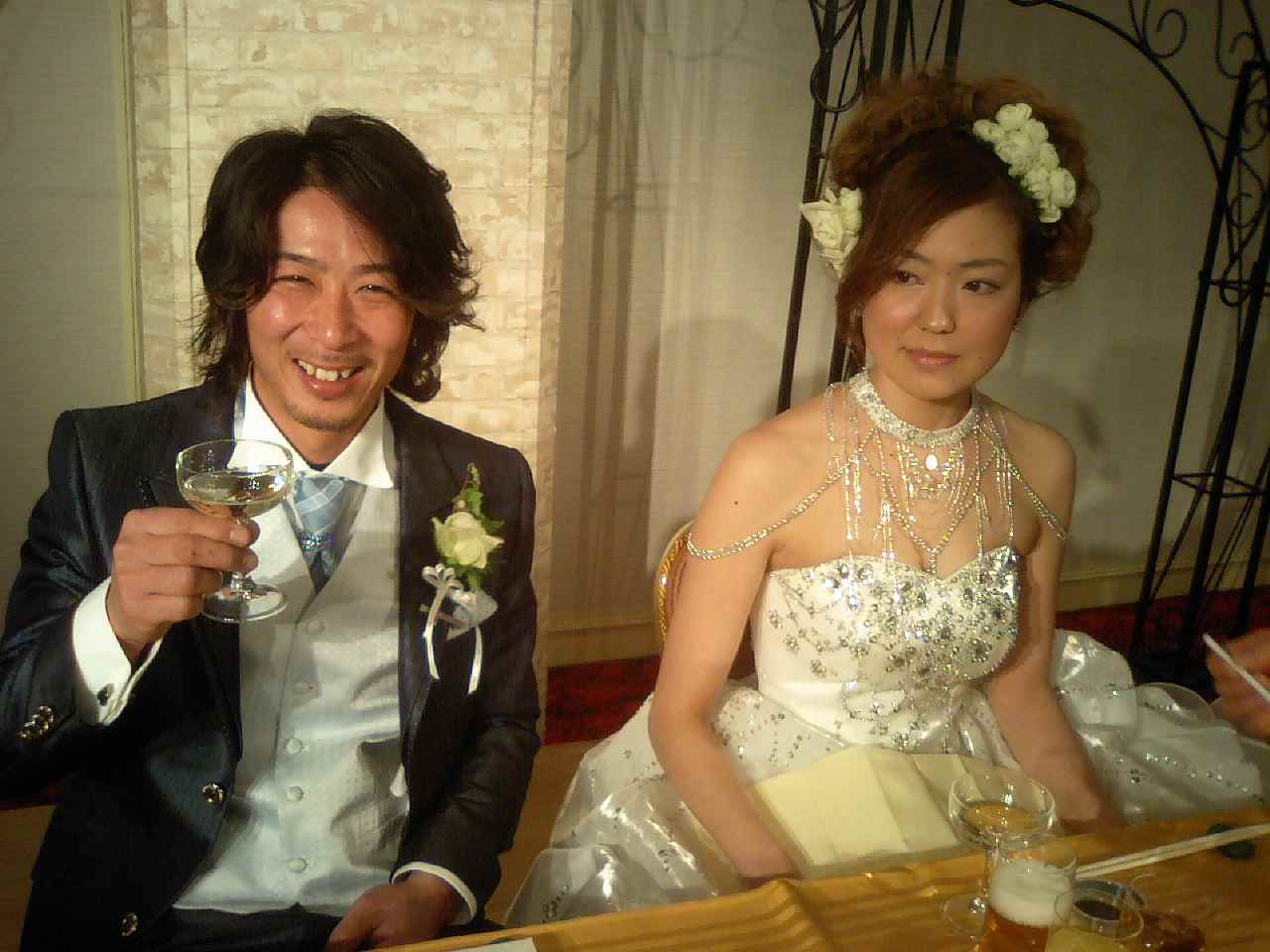 ついに結婚しました。年もとる事31年!待ちに待ったこの日がやってきました。どうですか?この晴れ姿!髪型も決まって、見た目最高!でもいつもはツナギでがんばる毎日です。これは披露宴がはじまって、間もないころの2ショット写真です。ちなみに結婚したのは僕ではありません!B・BOY(バイクボーイ)の新田晃一朗くんです。10代のときからの古き良き友人で、mcルーツというカスタムバイク屋さんの社長さんなんですがこの男は恐ろしいくらいよく喋るし、恐ろしく頭いいし、恐ろしく儲けてるし、恐ろしく儲けてるし、恐ろしく儲けてるし・・・・・新田くん、やっちゃん、末永くお幸せに!