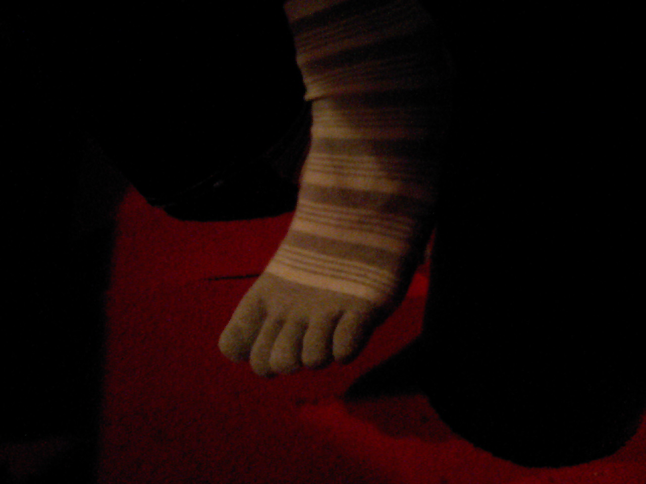 意外とオチャメな西林君は5本指のシマシマ靴下を履いていることが判明!!カラーは秋の京都を思わせる涼しげなイエロー・グレイ・イエロー・ホワイト・グレイの5本指靴下はまるで嵐山の落ち葉を思わせるサプライズカラーだ!