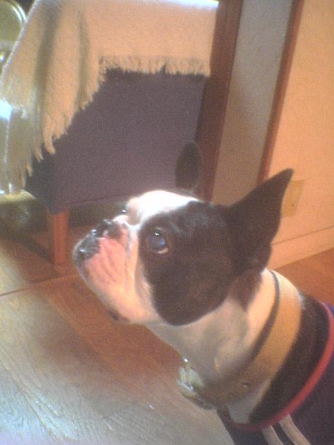 愛犬シリーズ第2弾!どうですか~^^黒白ボディーで鼻、口がクシャってなっててかっこいいでしょう~ この子はエマニエル村田ボーヤの1歳年上で名前が「ゼブラちゃんちゃこりんマン」これまたホンマの名前!ボストンテリアの男の子です。名前の由来は何とかマンにしたくて、昔にジャングルの王者ターちゃんってマンガに出てくるアナべべってのがいてて、マスクを被ったときはゼブラちゃんちゃこりんマンになるんです。そうなんです、余裕でパクりました。